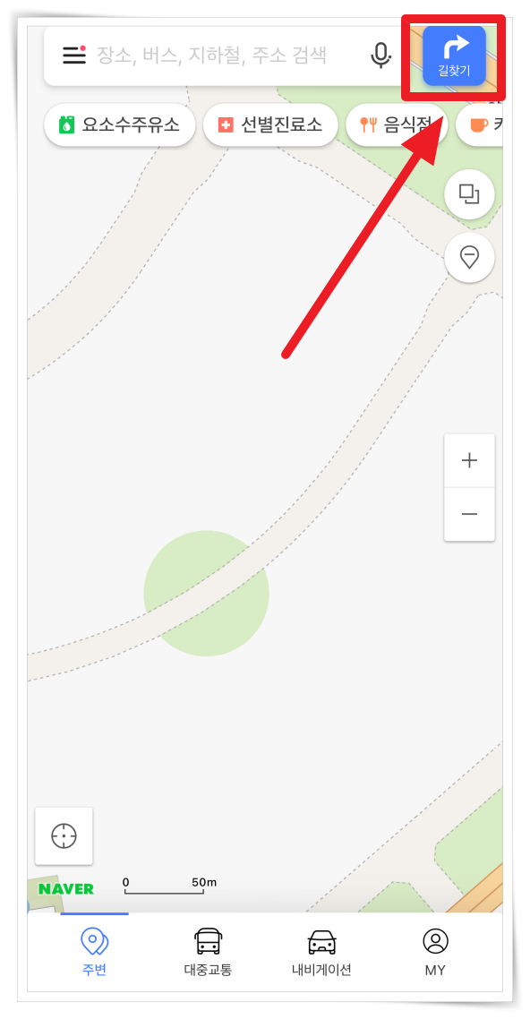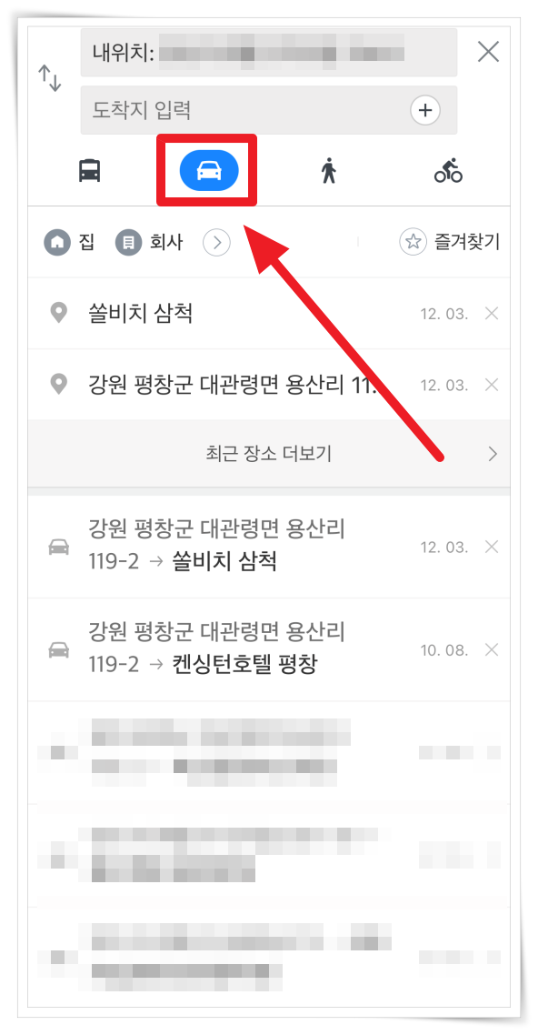 4. 우측 상단 "길찾기"에서 "자동차"로 설정 후 도착지를 입력해 주세요.
