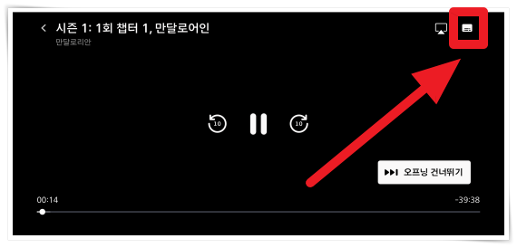2. 그러면 오디오, 자막의 언어를 선택하거나 활성화 시킬 수 있습니다.