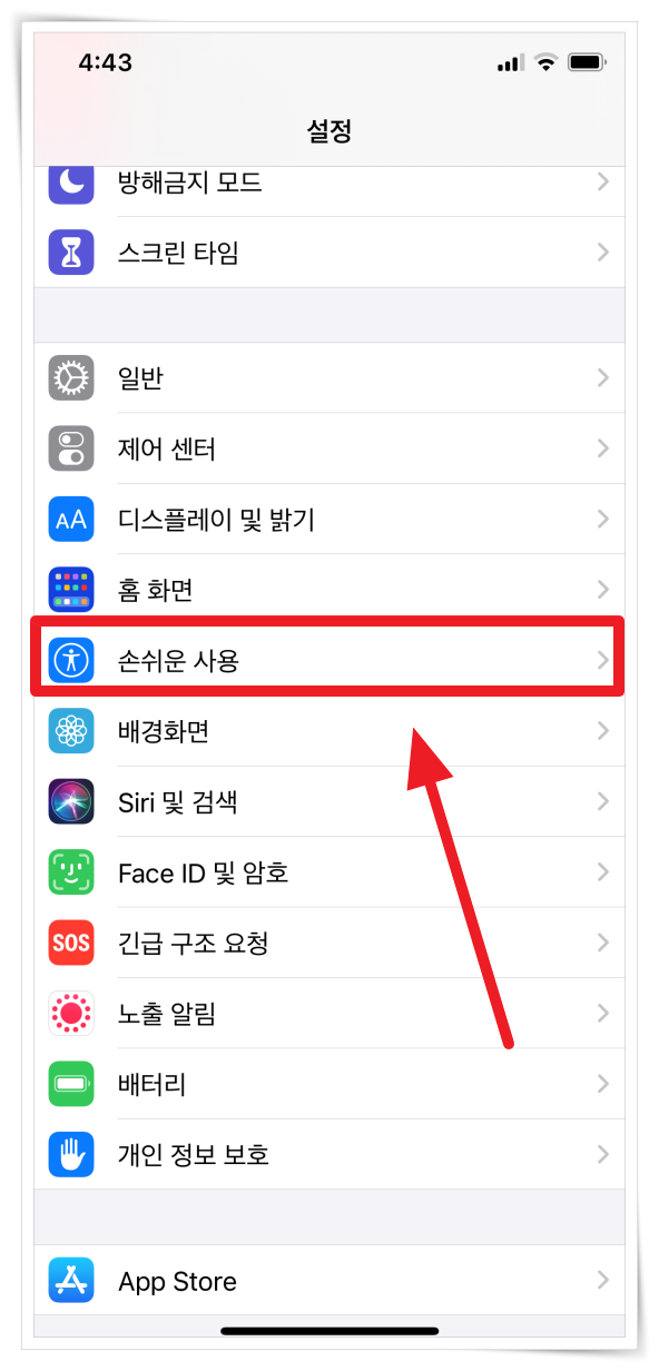 5. 설정에서 "손쉬운 사용"을 클릭해 주세요.