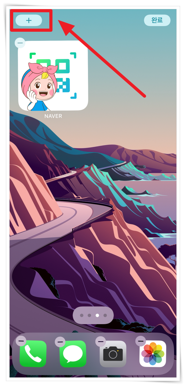 1. 핸드폰 바탕화면 빈자리를 꾹 눌러서 좌측 상단 + 버튼을 클릭해 주세요.