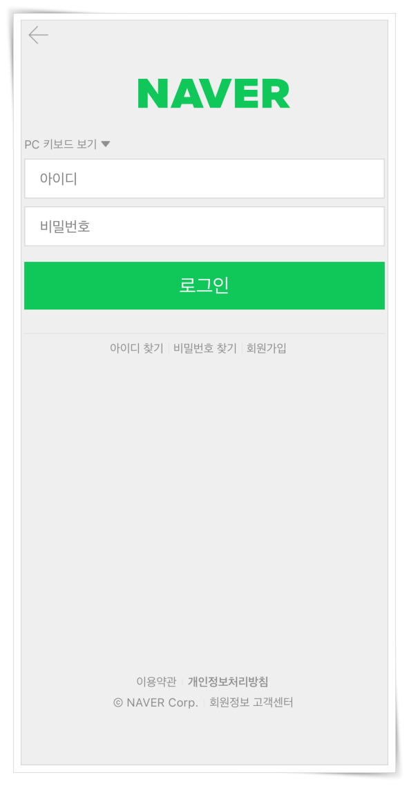 1. 먼저 네이버 페이 공식 앱 설치 후 로그인 및 휴대폰 인증을 진행해 주세요.