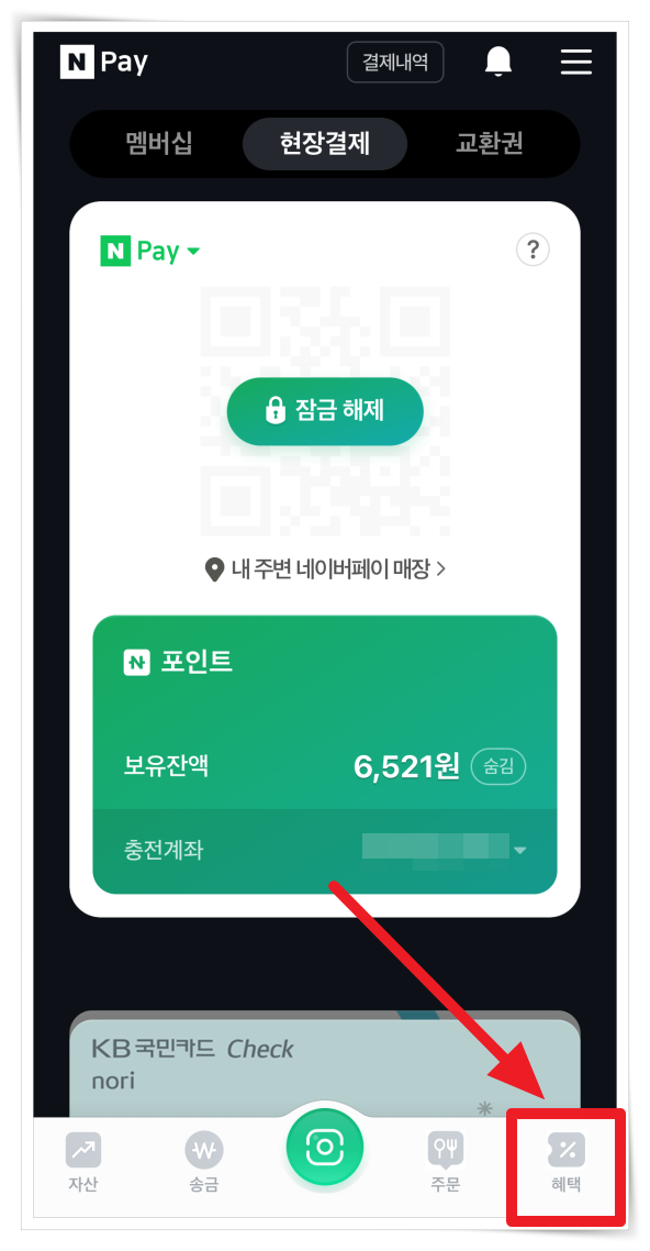 2. 메인화면 우측 하단 "혜택" 메뉴를 클릭해 주세요.