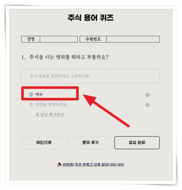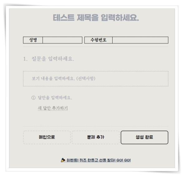 퀴즈를 만드는 방법은 회원가입이나 로그인 없이 이름과 비밀번호 설정하면 질문과 답안을 작성하실 수 있습니다.