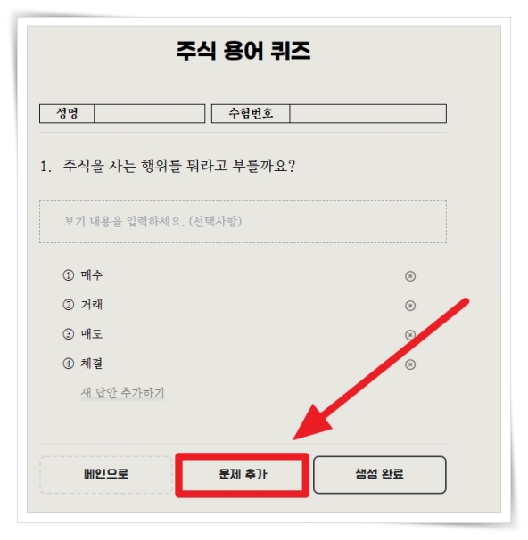 5. 문제를 작성하였다면 "문제 추가"를 통해 다른 문제를 추가하실 수 있습니다.