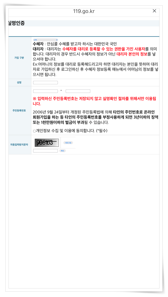 119 안심콜 서비스 신청