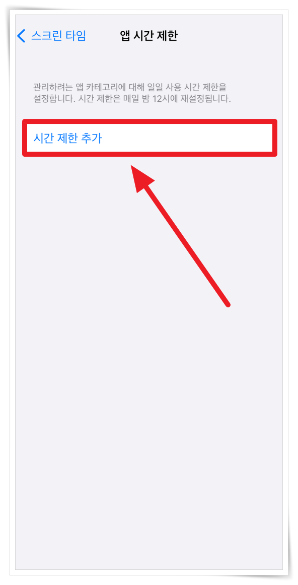 3. "앱 시간 제한" 메뉴에서 "시간 제한 추가"를 클릭해 주세요.