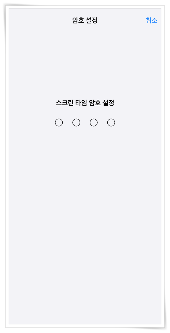 2. 메뉴에서 "스크린 타임 암호 사용"을 클릭 후 암호 4자리를 설정해 주세요.