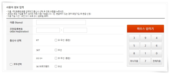 2. 이름, 주민등록번호, 통신사 등 사용자 정보를 입력해 주세요.