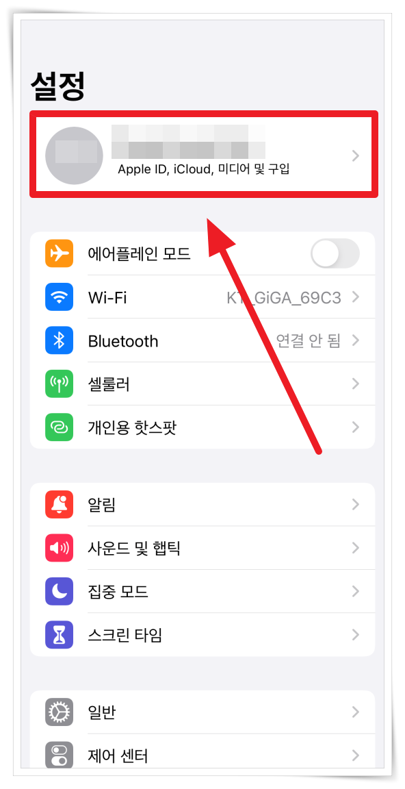 2. 설정에서 상단 프로필을 클릭해 주세요.