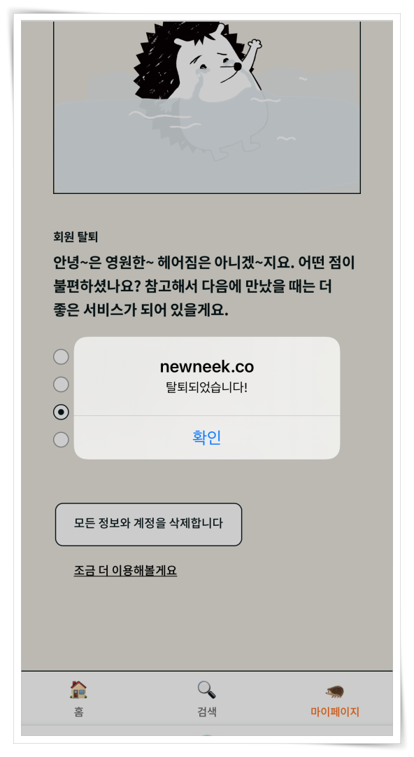 5. 마지막으로 확인을 클릭하면 탈퇴를 완료하실 수 있습니다.