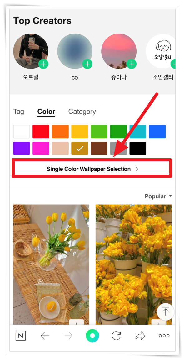 1. 홈페이지 상단 메뉴 "Wallpaper"에서 "Color"를 찾아 클릭해 주세요.