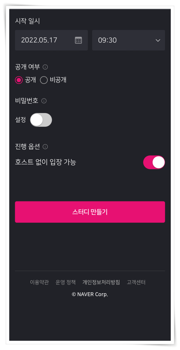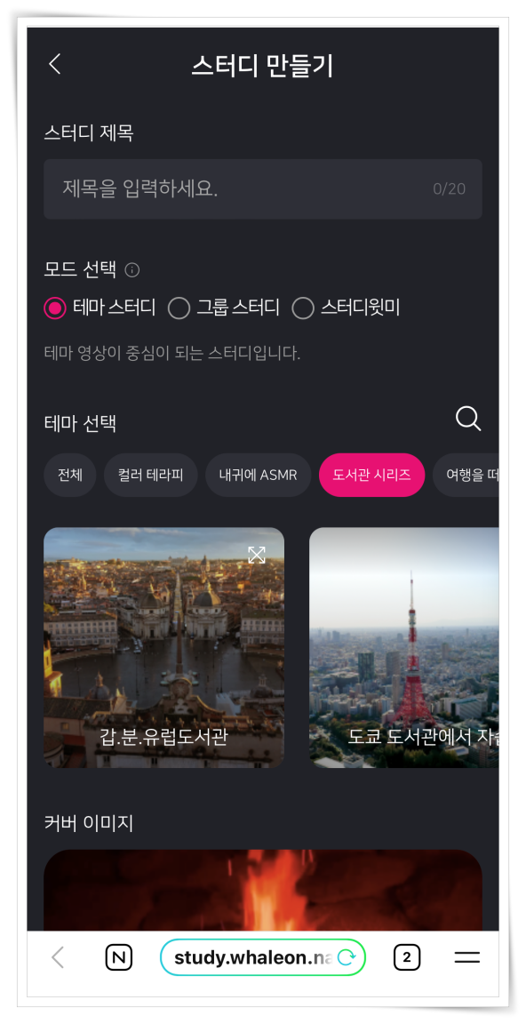 4. 스터디 제목과 3가지 모드 중 선택해 주세요.