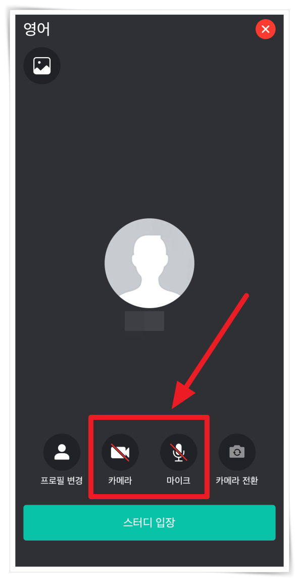 6. 설정 확인 후 "입장하기"를 클릭해 주세요. 카메라와 마이크는 비활성화시킬 수 있습니다.