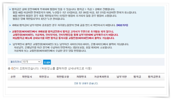 3. 주민번호, 차량번호를 입력 후 "검색"을 클릭해 주세요. 그러면 결과에서 범칙금을 확인하실 수 있습니다.