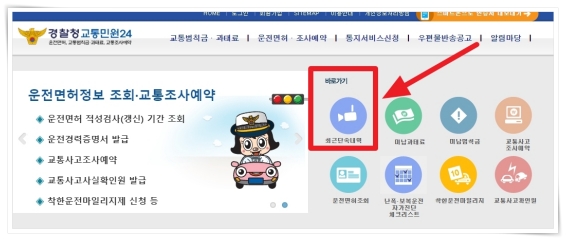 1. 홈페이지 바로가기 메뉴에서 "최근단속내역"을 클릭해 주세요.