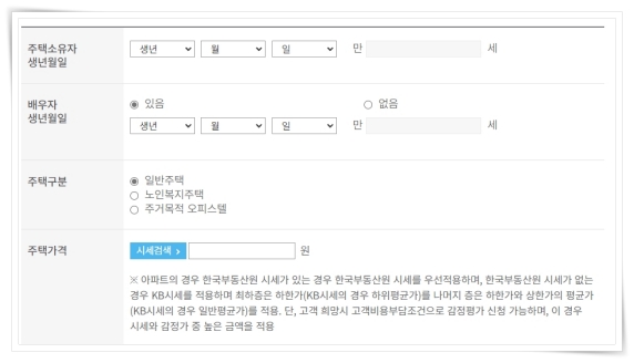 4. 소유자와 배우자 생년월일, 주택구분, 주택가격을 입력해 주세요.