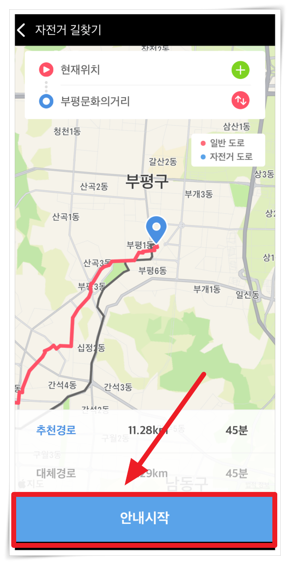 4. 설정을 완료하며 자전거 내비를 이용하실 수 있습니다.
