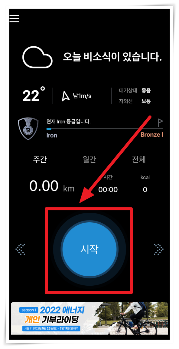 1. 앱을 설치하면 첫 화면에 "시작" 버튼이 있습니다. 클릭하면 주행 기록을 측정하실 수 있어요.