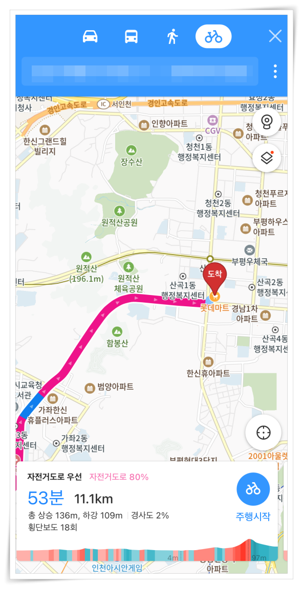 4. 설정을 완료하며 자전거 내비를 이용하실 수 있습니다.