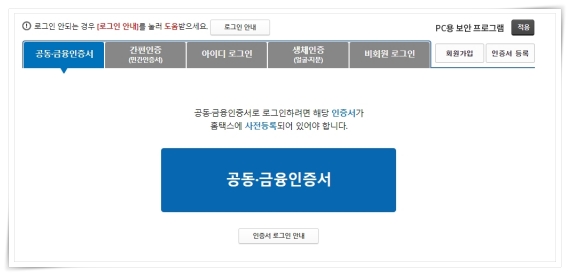 2. 공동 인증서 또는 간편인증으로 로그인이 가능합니다. 저는 간편인증이 더 편하게 느껴지더군요.