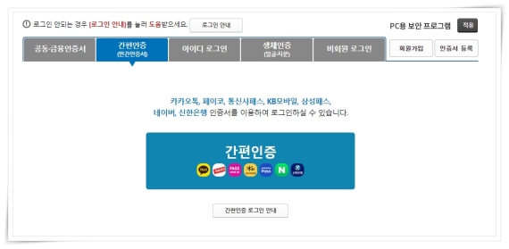 3. 간편인증은 컴퓨터에 보안 프로그램없이 네이버, 카카오톡으로 간단하게 인증이 가능합니다.