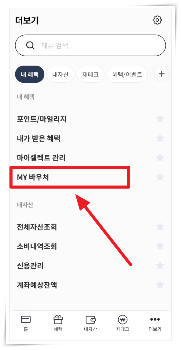 2. 상단 메뉴에서 "내 혜택"을 클릭해 주세요.