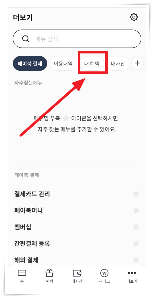 2. 상단 메뉴에서 "내 혜택"을 클릭해 주세요.