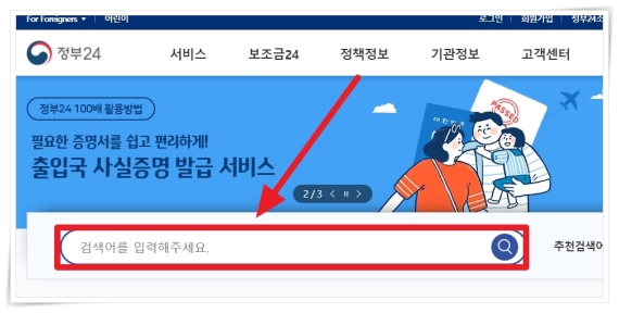 1. 정부24 홈페이지 검색창에 "명절"을 검색해 주세요.