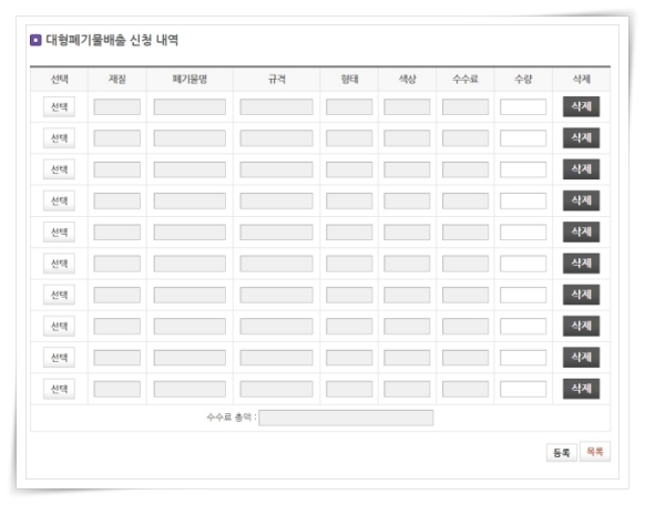 6. 선택을 클릭하여 폐기물을 선택해 주세요.