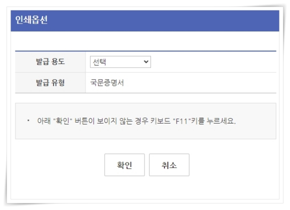 8. 그러면 증명서를 프린터 또는 pdf 저장하실 수 있습니다.