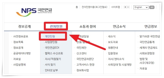 1. 홈페이지 상단 메뉴에서 "전자민원" > "개인민원"을 클릭해 주세요.