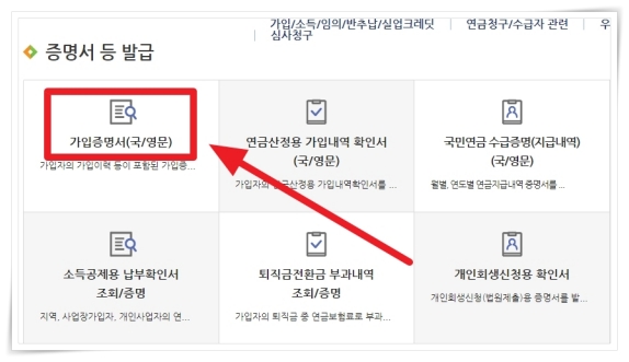 4. 증명서에서 "가입증명서(국/영문)"을 클릭해 주세요.