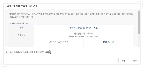 5. 수집 및 이용에 대한 안내에 확인을 클릭해 주세요.