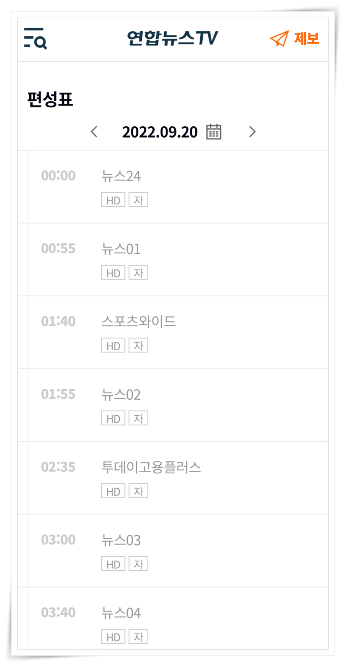 4. 편성표에서는 일일 방송 시간을 확인하실 수 있어요.