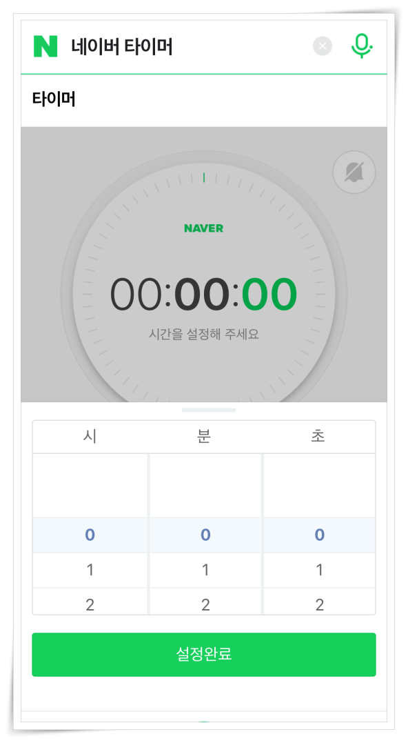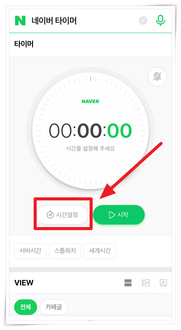 1. 먼저 타임워치로 이동하면 바로 타이머 기능을 이용할 수 있습니다. 시간설정을 클릭해서 시간을 설정해 주세요.