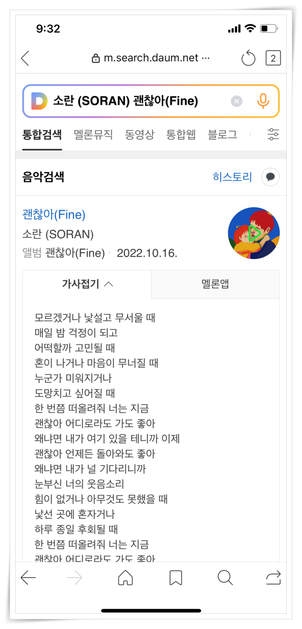 4. 그러면 결과에서 노래 정보를 보실 수 있습니다.