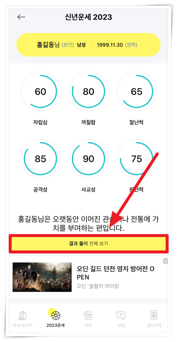 5. 자립심, 까칠함, 잘난척 등 성향을 보실 수 있습니다. 좀 더 자세한 풀이을 보려면 "전체 보기"를 클릭해 주세요.