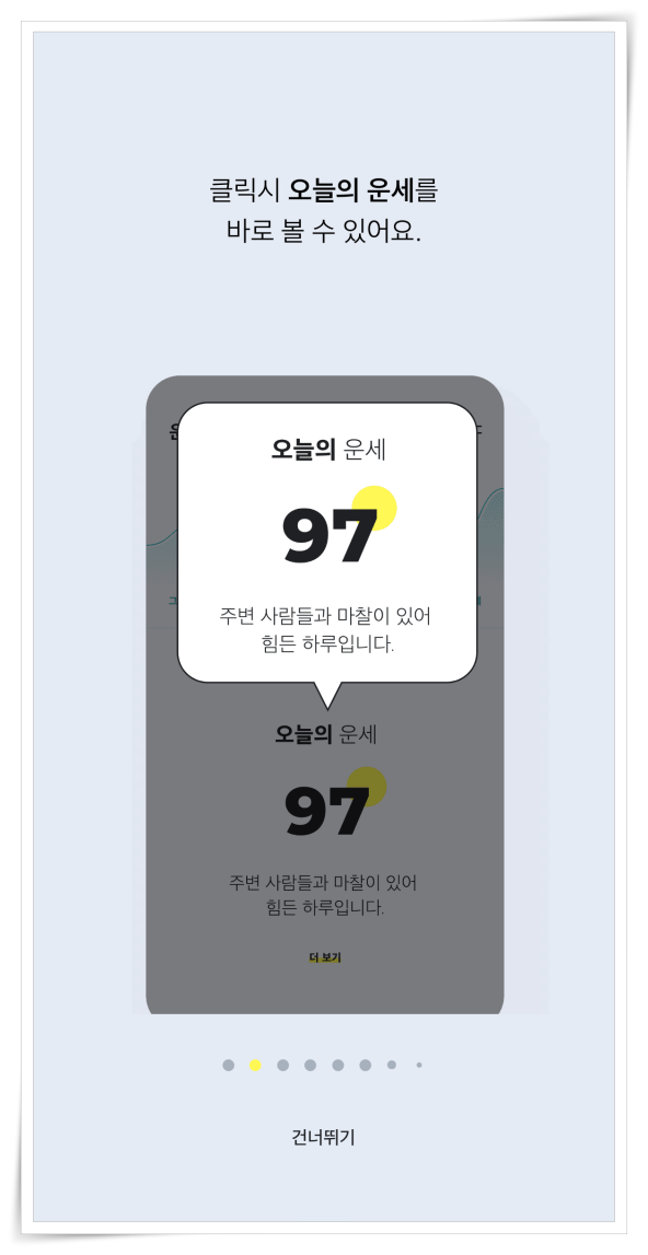 바로 점신 어플인데요. 하루 맞춤형 운세보고서를 제공하는 앱입니다. 어플을 키면 오늘의 운세, 시간대별 운세, 바이오리듬 및 애정운, 금전운, 건강운을 바로 확인할 수 있습니다. 그리고 2023년 계묘년 새해 풀이와 성공을 위한 조언, 토정비결은 기본! 내가 피해야 할 상대는 누구인지, 내 인연은 누구인지, 언제 어디로 이사를 가면 좋을지 다양한 운세를 확인해 볼 수 있습니다.