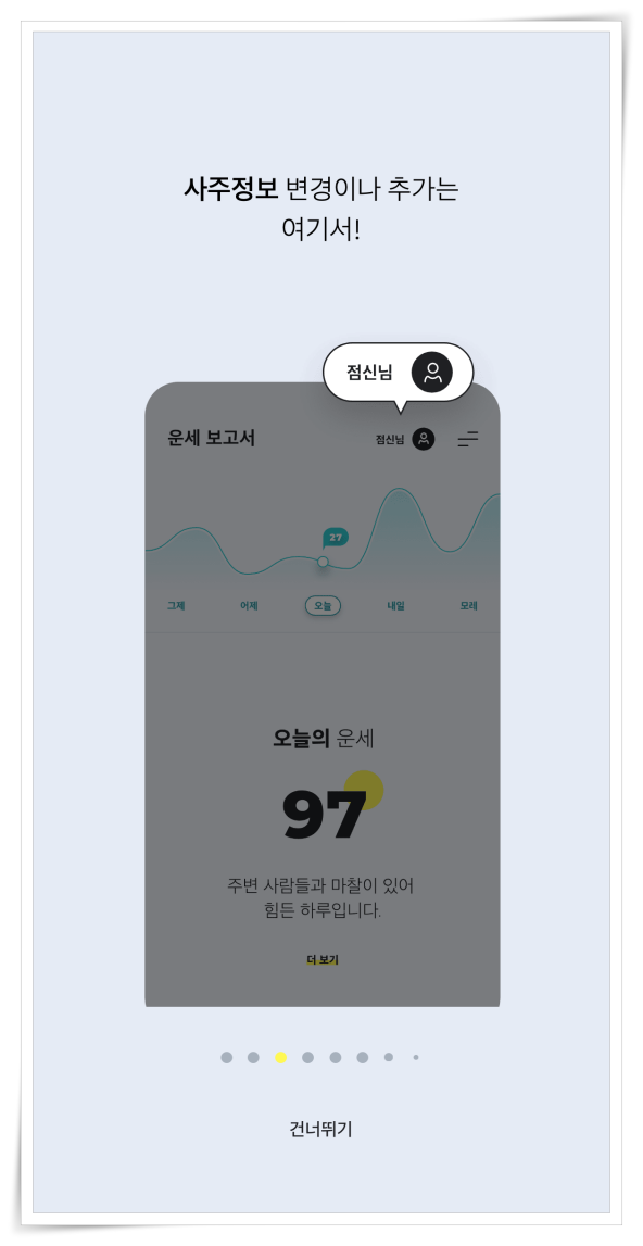 1. 앱 설치 후 이름, 생년월일, 태어난 시간, 성별 등 사주 정보를 입력해 주세요.