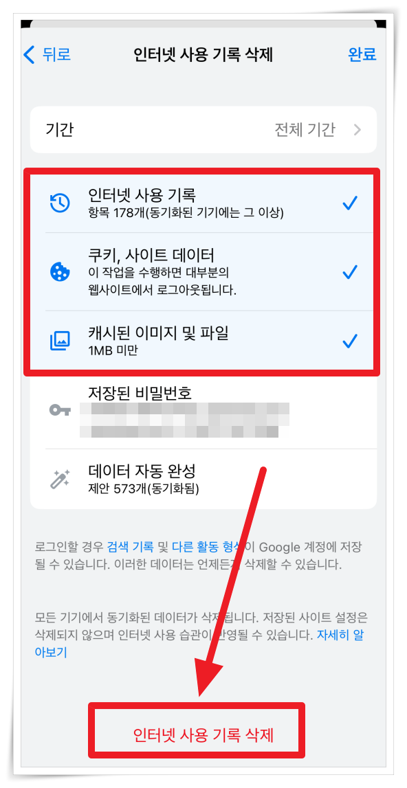 4. 그러면 열어본 웹페이지 등 임시로 저장된 데이터를 삭제할 수 있습니다.