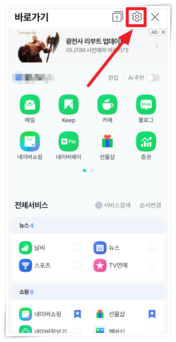 2. 우측 상단 설정 아이콘을 클릭해 주세요.
