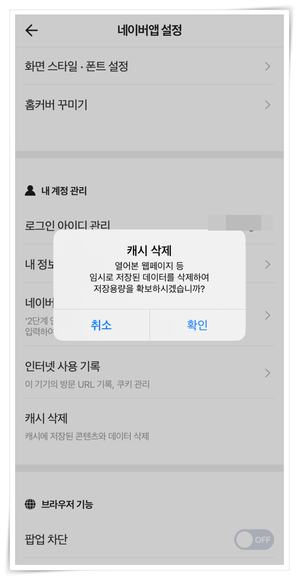 네이버 앱 쿠키 삭제