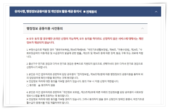 3. 공동이용 사전동의를 모두 체크해 주세요.