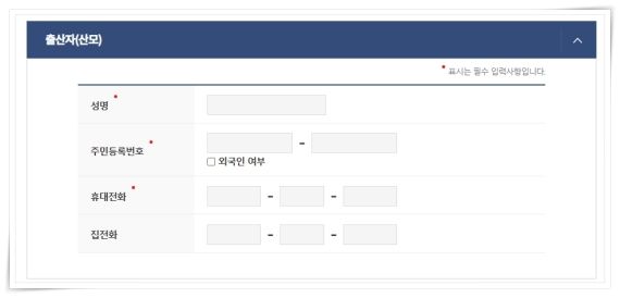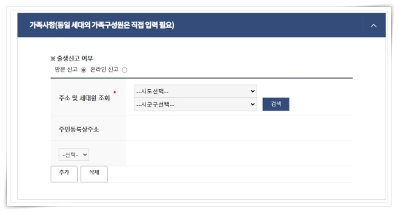 6. 가족사항을 입력 후 신청서를 작성하면 완료하실 수 있습니다.