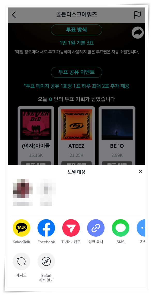 8. 그러면 페이지 공유 1회당 1표 하루 최대 2표 추가로 얻으실 수 있습니다.