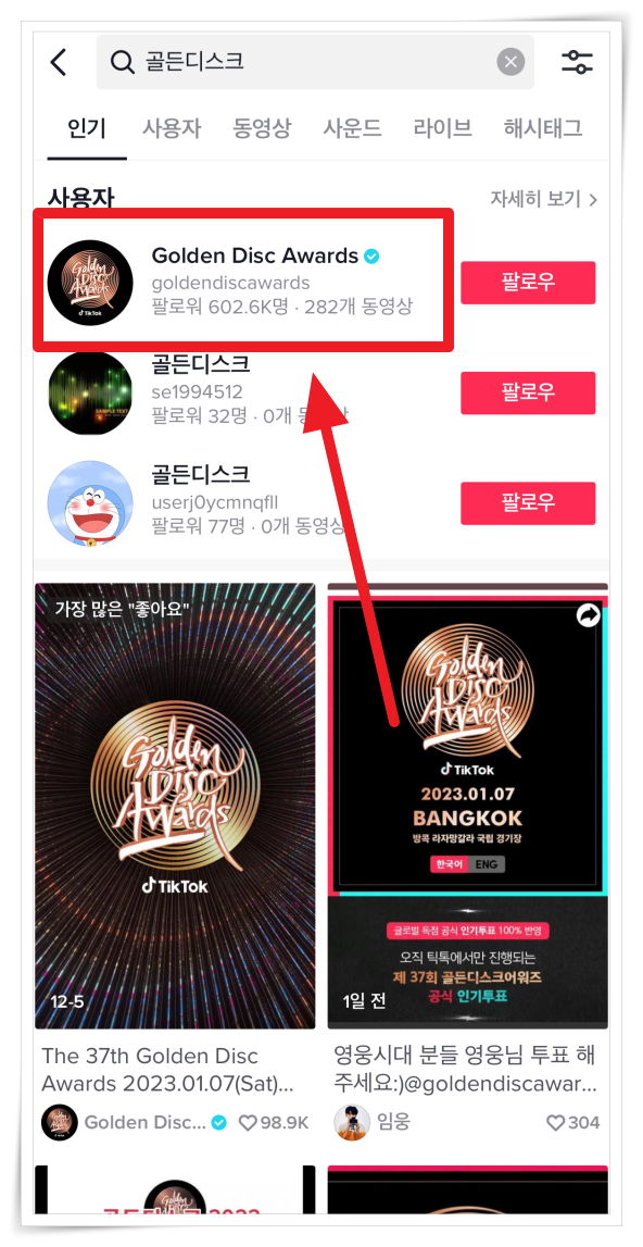 4. 검색 결과에서 "Golden Disc Awards"를 클릭해 주세요.