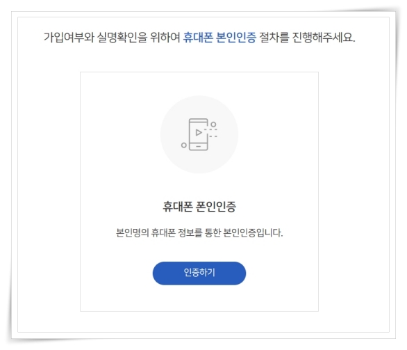 4. 가입여부와 실명확인을 위해아 본인인증을 진행해 주세요.