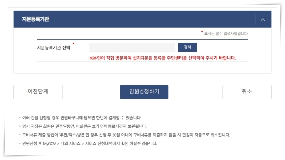 7. 지문등록 기관 선택 후 6개월 이내 방문해서 지문을 등록하면 접수를 완료하실 수 있습니다.