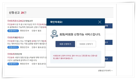 2. 검색 결과에서 서비스를 찾아 우측 "신청"을 클릭해 주세요.