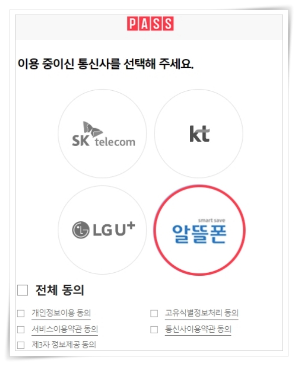 4. 이용 중인 통신사를 선택 후 인증을 진행해 주세요.